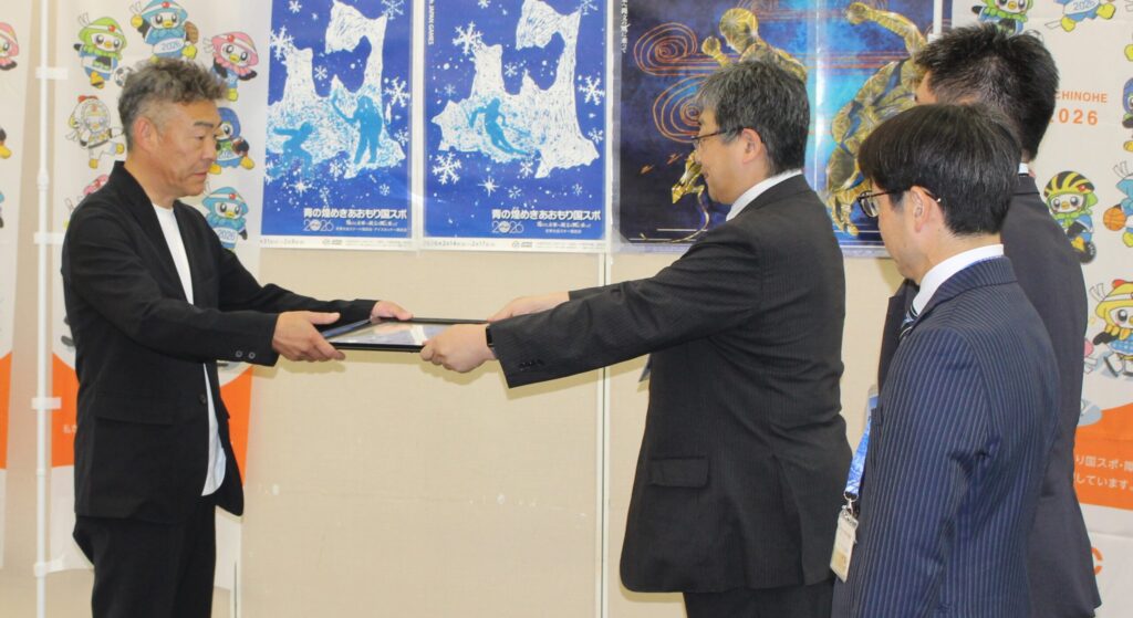 青の煌めきあおもり国スポ・障スポの開催に当たり、株式会社ジーアイテック様よりのぼり旗