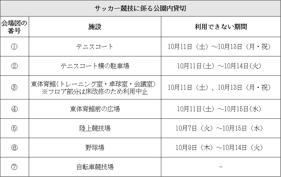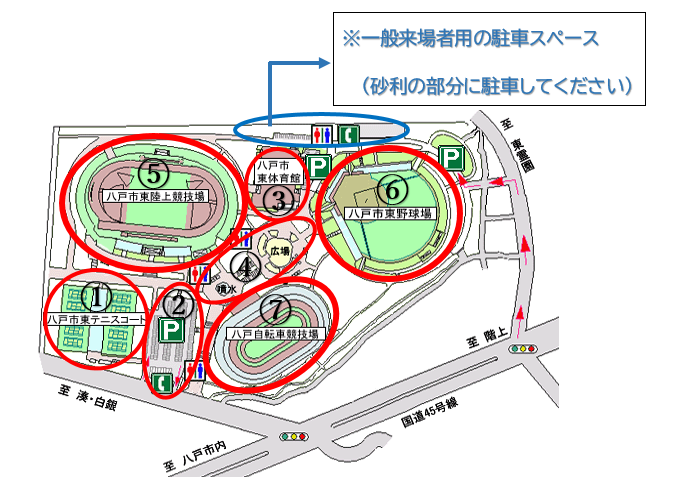 国スポリハーサル大会の開催に伴い、八戸市東運動公園の一部が利用できなくなります。