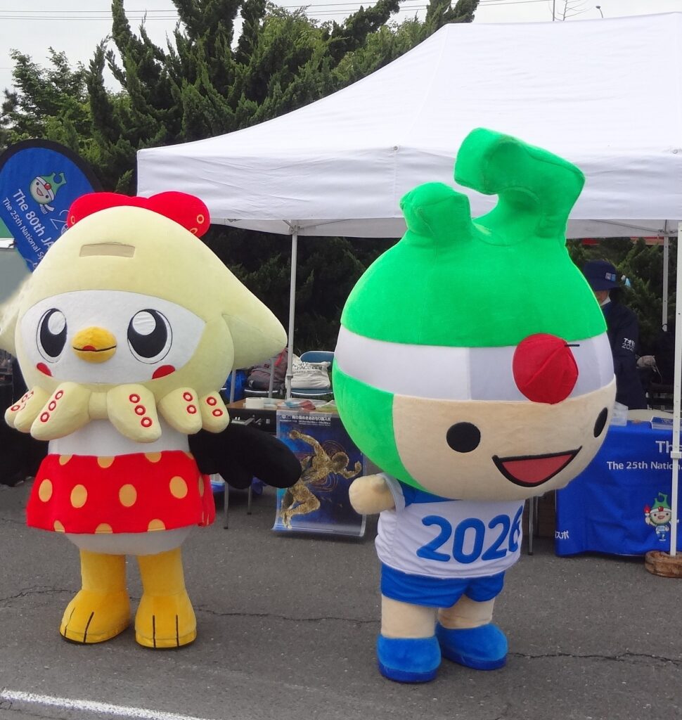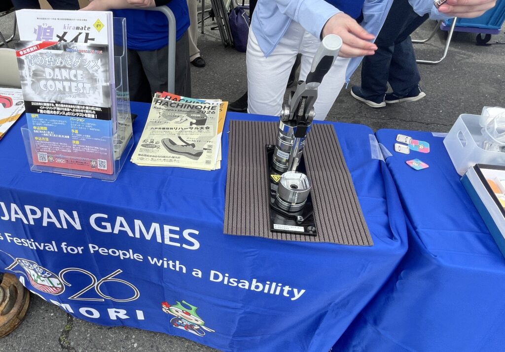 ブースでは国スポグッズの当たる福引やオリジナル缶バッジづくりを体験できるコーナーを設けるとともに、八戸市公式マスコットキャラクター「いかずきんズ」、「青の煌めきあおもり国スポ・障スポ」公式マスコットキャラクター「アップリート君」も登場し、来場者の方々に向けて国スポの周知を行いました。