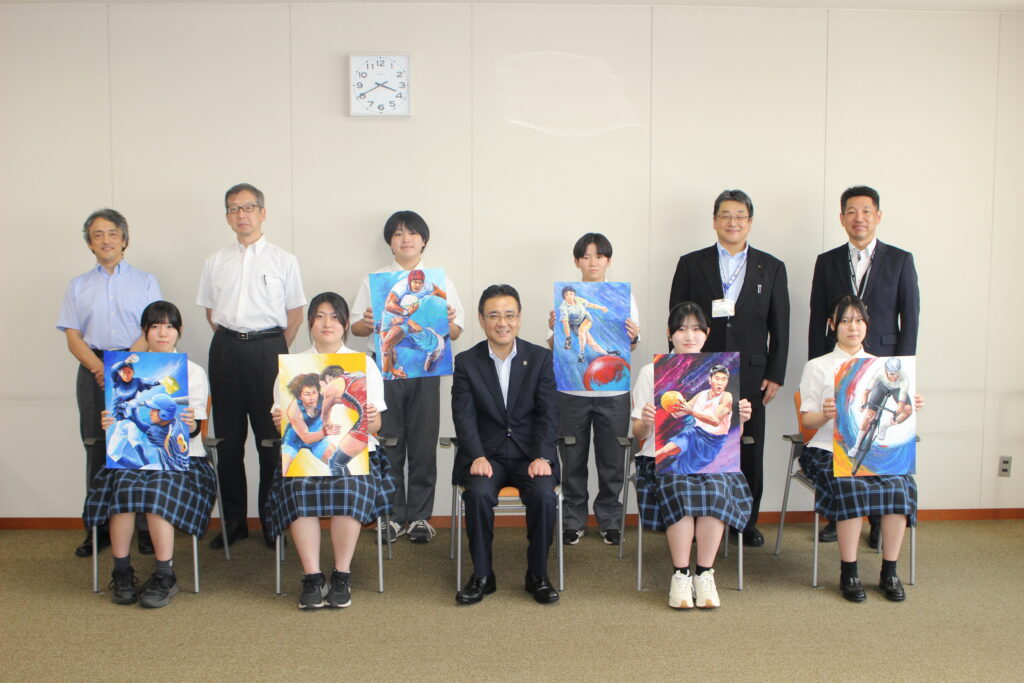 令和8年に開催される「青の煌めきあおもり国スポ・障スポ」のPR活動の一環として、この度、八戸工業大学第二高等学校美術コースの生徒の皆様に、八戸市開催競技のポスター図案を制作いただき、8月26日に入選者表彰式を行いました。