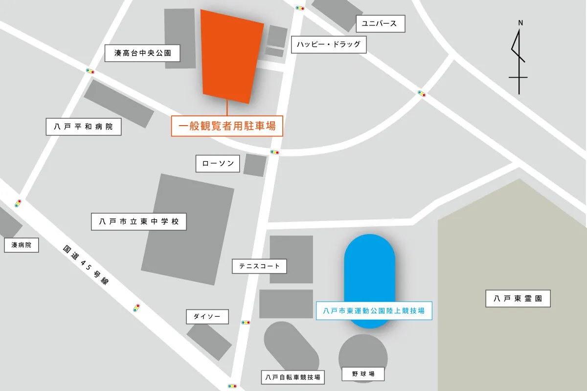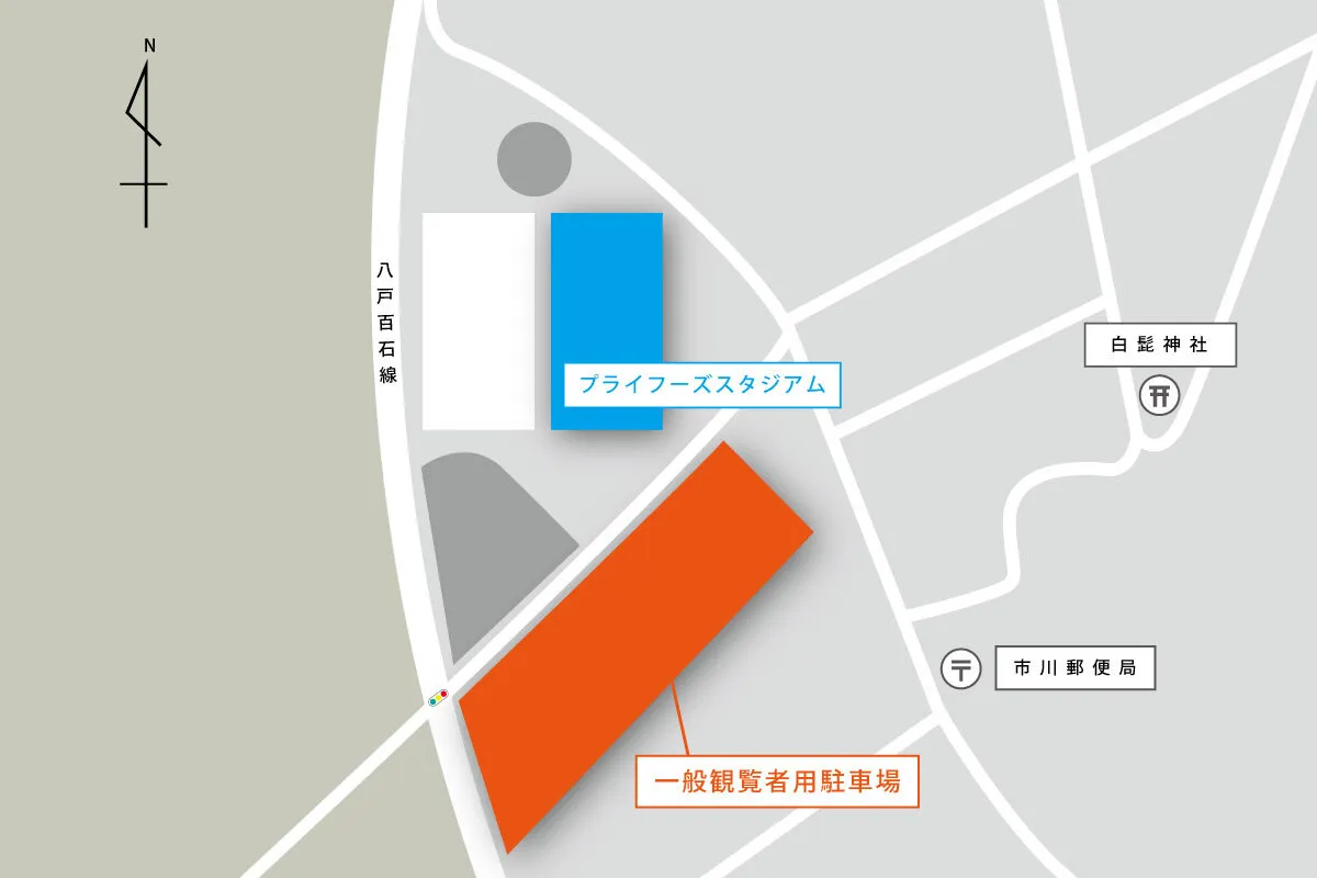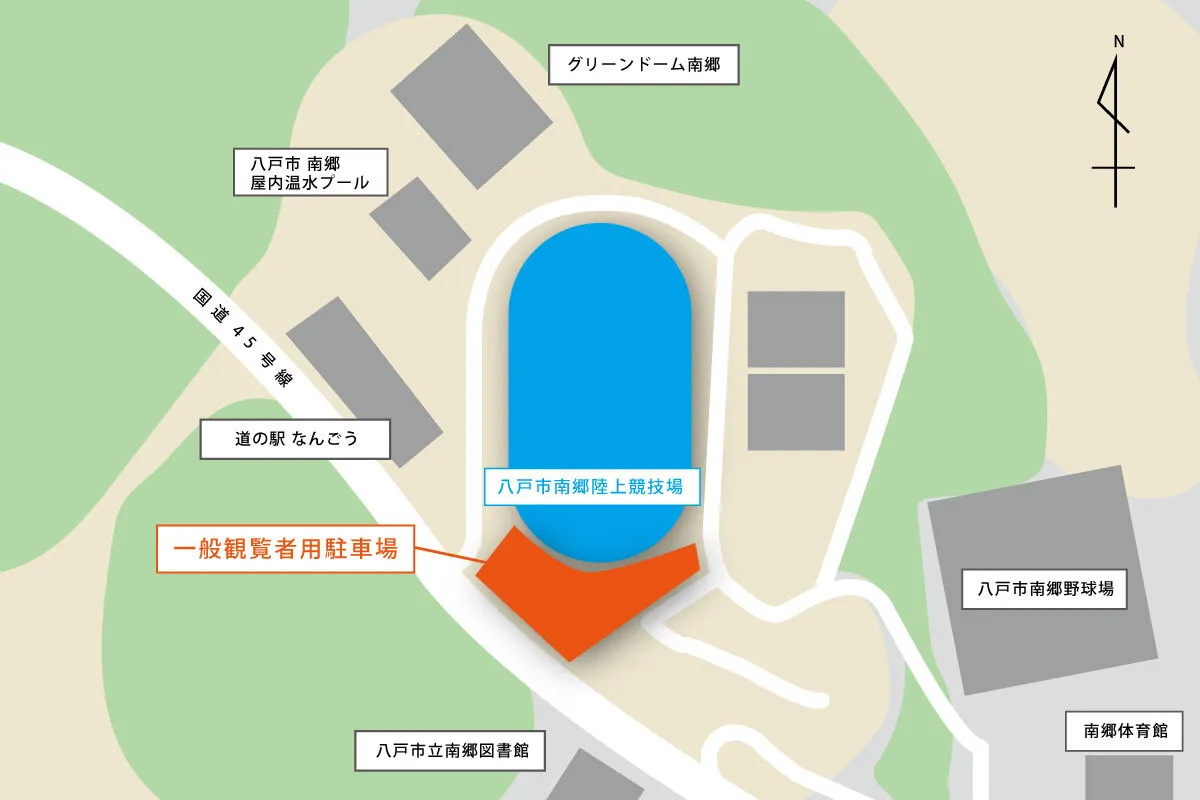 八戸自動車道・八戸南インターチェンジより約10分、約500台駐車可能(一般観覧者用駐車場)