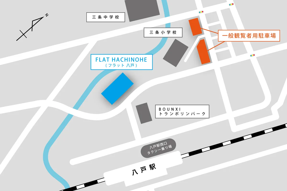 会場には専用駐車場はありません。お車でお越しの際は、一般観覧者用駐車場をご利用ください。